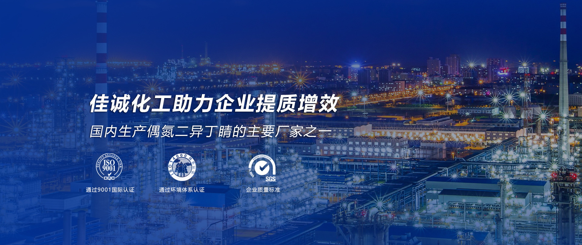 安達佳誠化工有限公司始建于2010年11月,廠址位于黑龍江省安達市糖廠院內哈大齊工業園區,毗鄰美麗的油城大慶市8公里,占地面積3.5萬平方米,總投資6200萬元。公司建成4000噸/年偶氮二異丁腈(AIBN,V60)生產裝置和日處理600噸化工污水處理場及配套公用工程系統。同時是國內偶氮二異庚腈(ABVN,V65),偶氮二異戊腈(AMBN,V59),偶氮二異丁脒鹽酸鹽(AIBA,V50)...